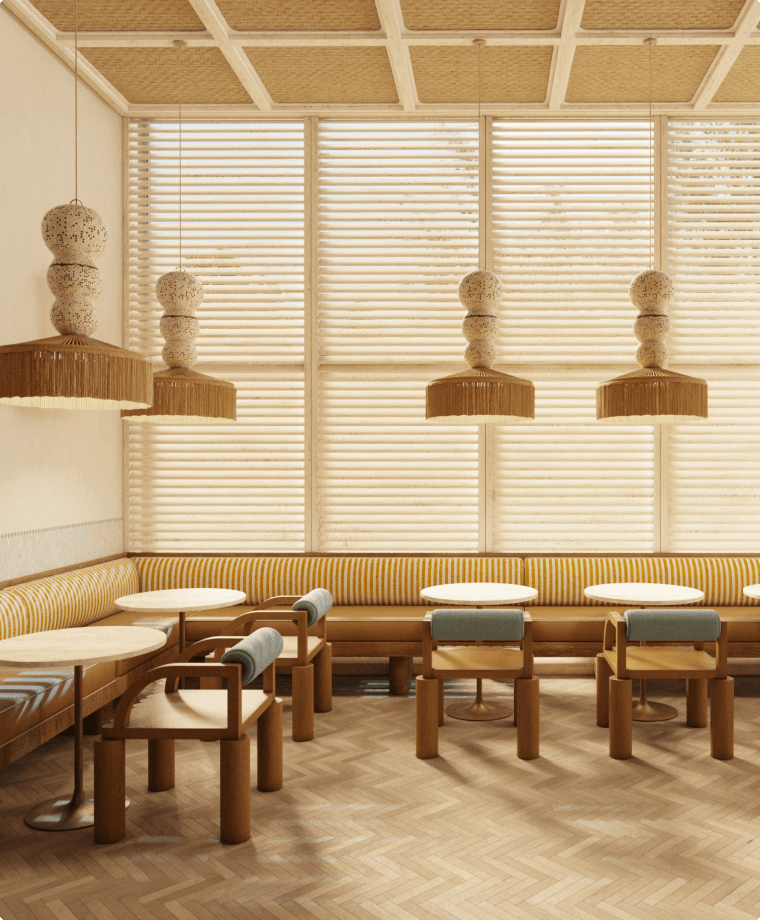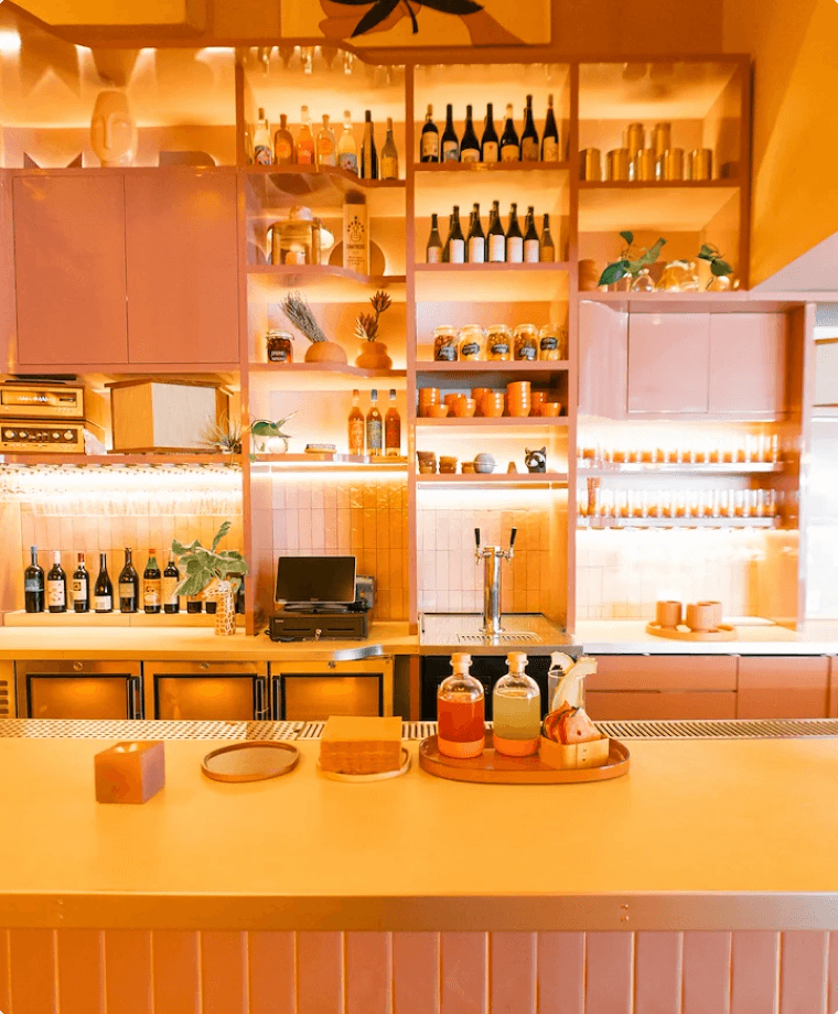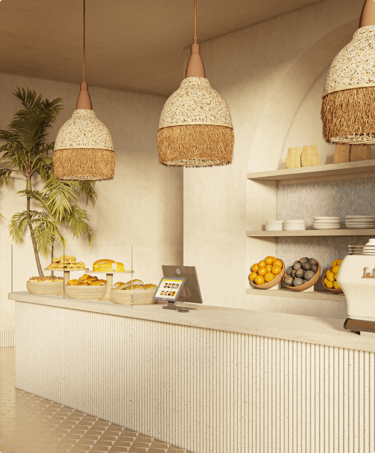 En sortant du yoga ou de la piscine, vous entrez dans l'espace café. Servant de la nourriture et des boissons, cet espace est un point central de voisinage.